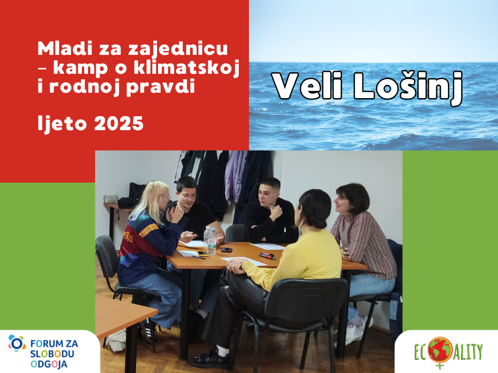 Forum za slobodu odgoja, u okviru projekta “Ecoality: mladi i lokalna zajednica za klimatsku i rodnu pravdu”, poziva mlade osobe (18-30 godina) koje žive/studiraju/rade u Zagrebu da se prijave na ljetni kamp “Mladi za zajednicu – kamp o klimatskoj i rodnoj pravdi” koji će se održati od 21. do 30. srpnja 2025. godine u Velom Lošinju, uz pripremni trening koji će se održati 16. srpnja 2025. u Zagrebu.